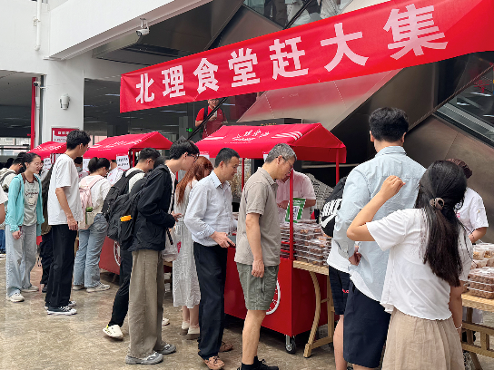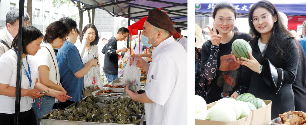 一踏入集市,粽叶的清香便扑鼻而来!北理食堂的手工粽子颗颗饱满,多种口味令人垂涎欲滴,引得师生们驻足挑选。食堂的大厨们更是大显身手,软糯香甜的蛋黄酥、辛香扑鼻的酱肘子猪蹄、金黄油亮的炸鱼……每一样都散发着诱人的光泽,让人挪不开眼。还有水灵饱满的瓜果蔬菜、新鲜的肉类,码放得整整齐齐,让你轻松备齐端午家宴!师生们穿梭其间,满载而归。